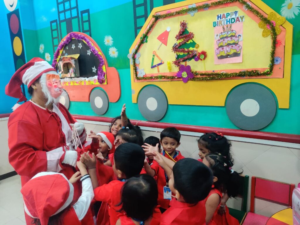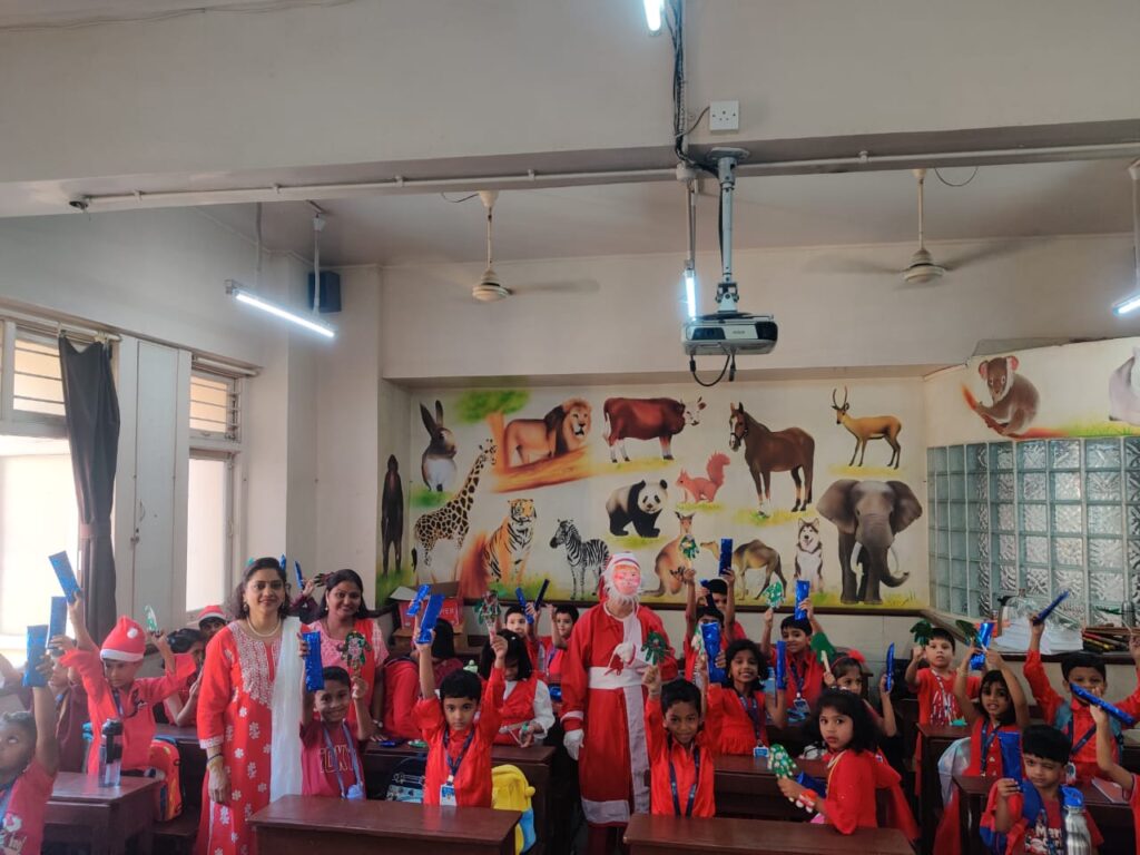 Our pre primary section celebrated Christmas with great joy and enthusiasm. The program included a beautiful Christmas story, melodious carol singing, and cheerful performances by the teachers. Santa Claus made a special appearance, spreading happiness and laughter among everyone. The celebration ended with the distribution of gifts, making the day memorable and filled with festive spirit. 🎄🎅