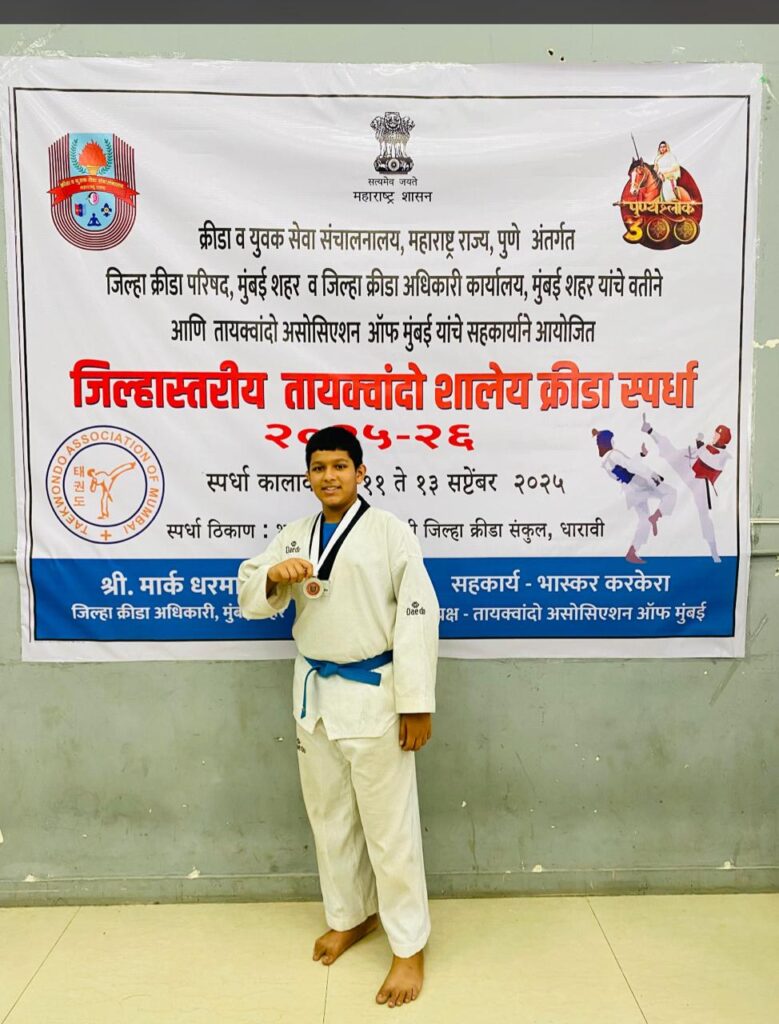 Mst. Sharvin Damle (8/B) won Silver medal in DSO Taekwondo under 17 boys category.