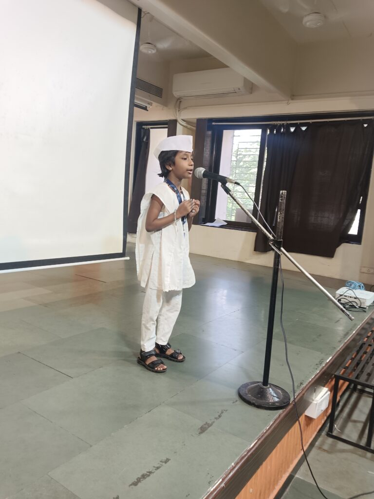 Pre primary section celebrated birth anniversary of Gandhiji. The tiny tots delivered short speeches highlighting the quotes of Mahatma Gandhi and conveyed his noble messages.