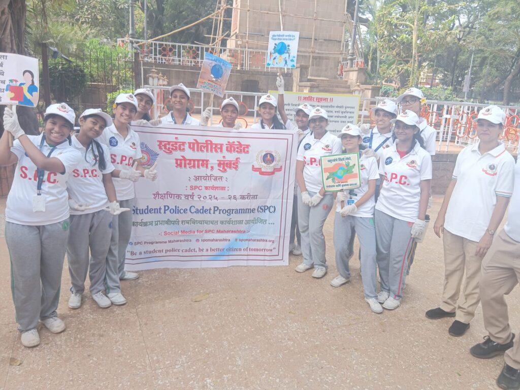 Under the Student Police Cadet (SPC) Programme, std. VIII and IX went for Cleanliness Drive at Shivaji Park, Dadar.